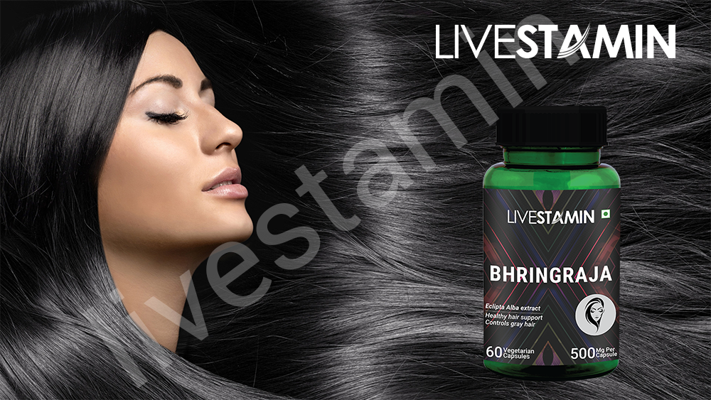 LIVESTAMIN Bhringraja extract supplement is 100% pure natural vegetarian capsules. It contains 60 capsules per bottle of 500 mg pure extract per capsule.