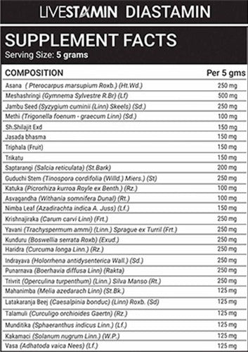 LIVESTAMIN Diastamin Powder is an ayurvedic powder suitable for both type 1 and type 2 diabetes people.