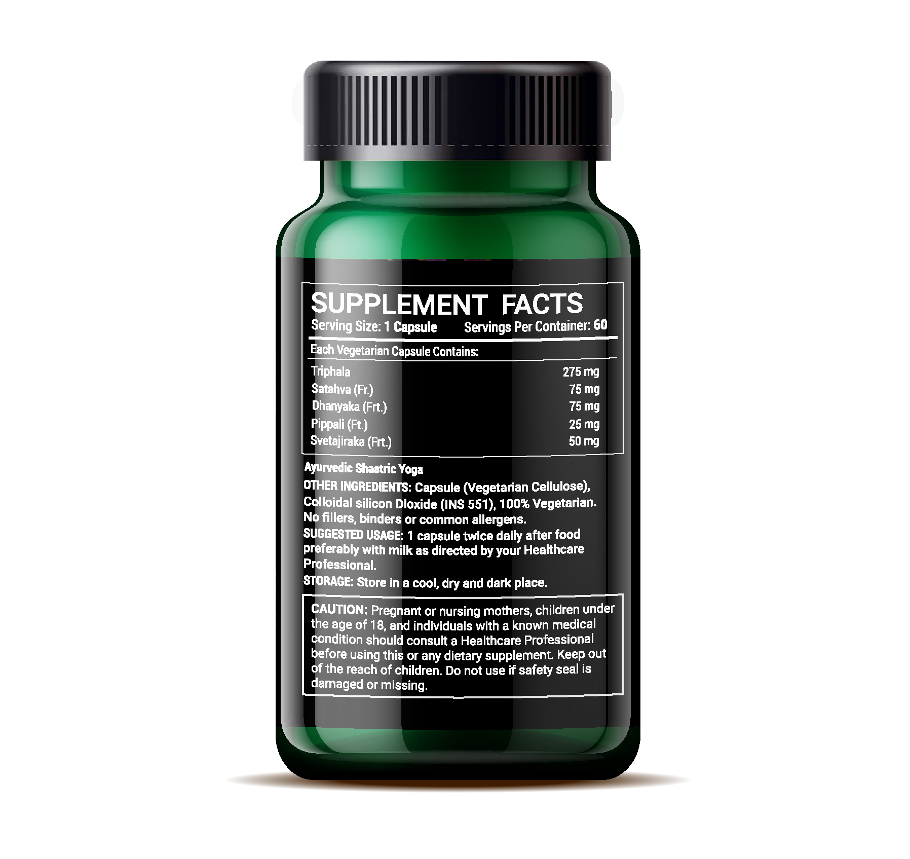 LIVESTAMIN Digestion Support Capsules is a unique blend of herbal ingredients such as Triphala, Satahva, Dhanyaka, Pippali and Svetajiraka.