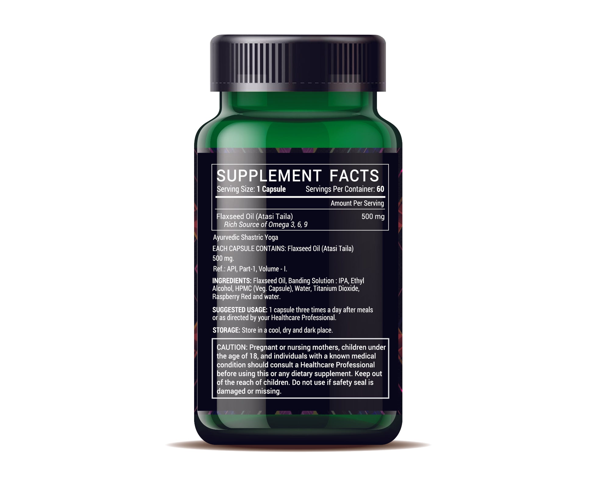 LIVESTAMIN Flaxseed oil 500 mg contain 60 vegetarian capsules per bottle and each capsule contains 500 mg of flaxseed oil-filled within.