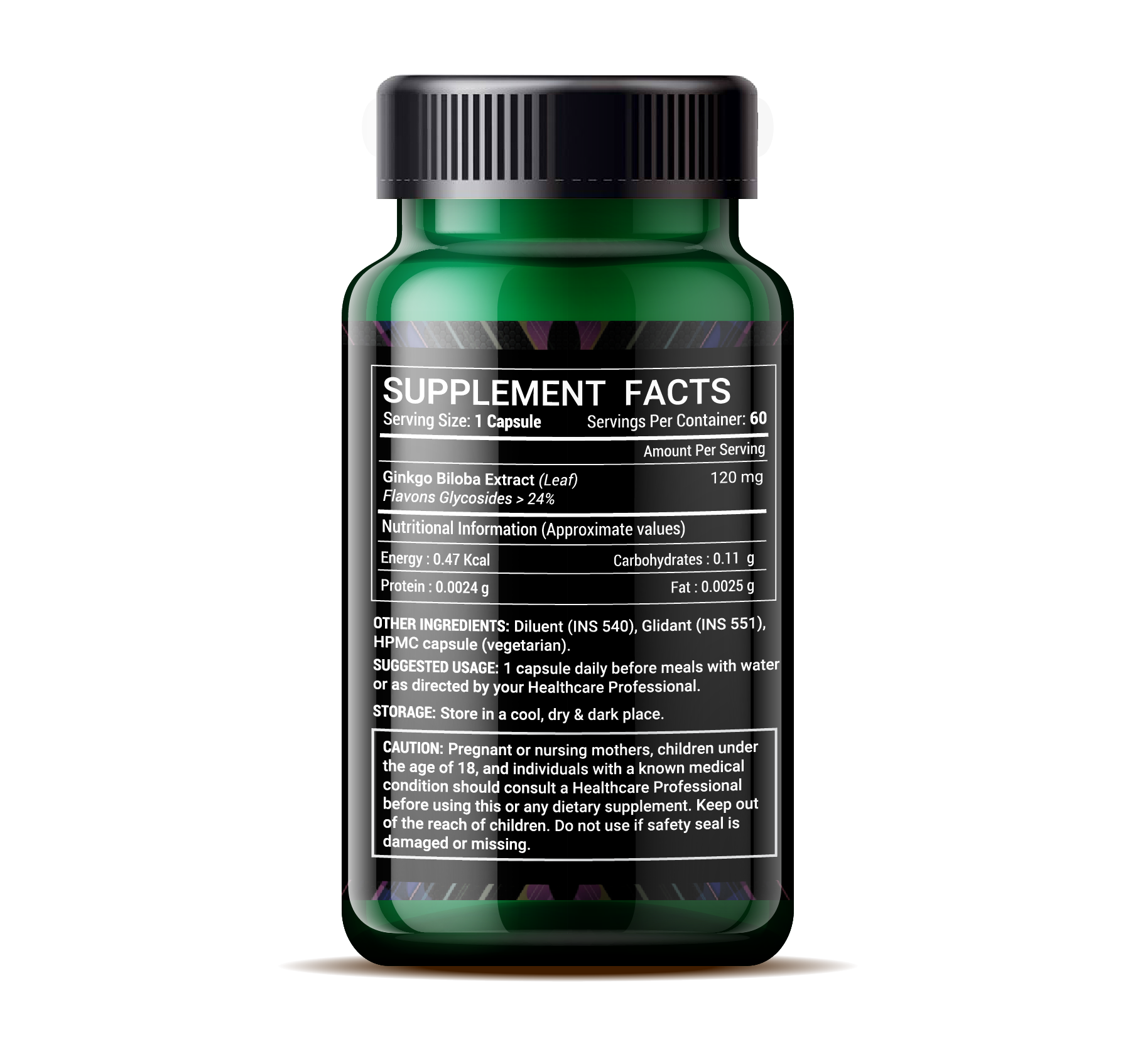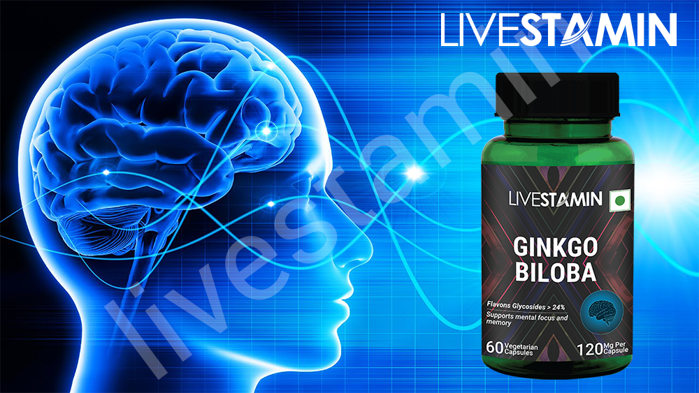 LIVESTAMIN Ginkgo Biloba 120mg supplement contains 60 veg capsules per pack. These are 100% Ayurvedic and vegetarian which helps in improving blood flow to the brain and has a positive effect on memory function, also assist in improving energy, immunity and build stamina by acting as an antioxidant.