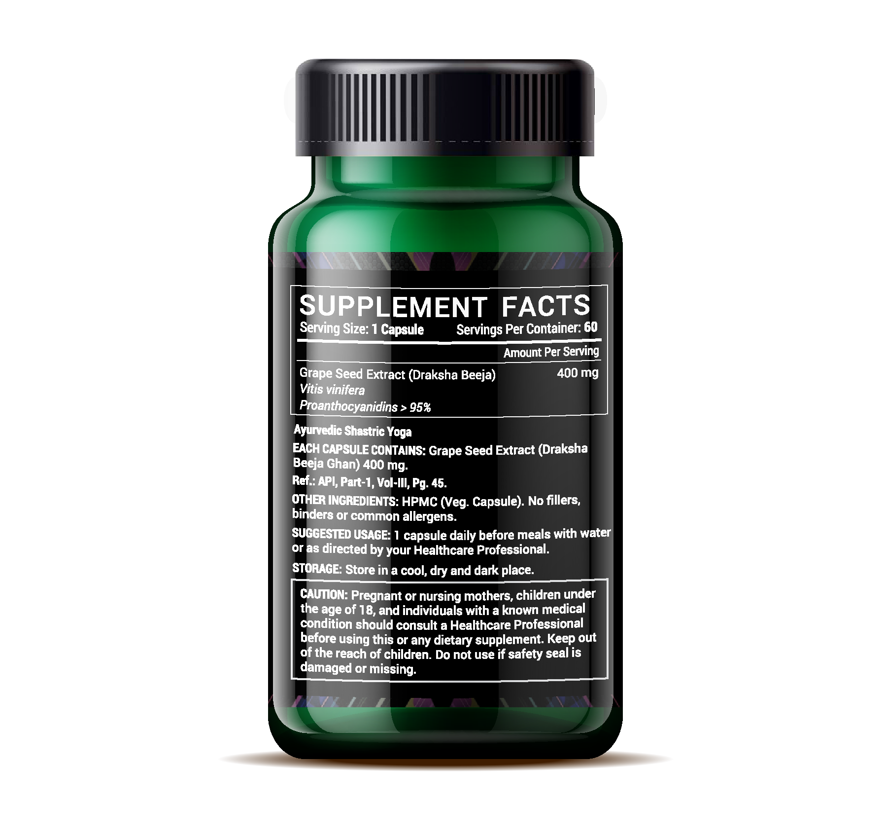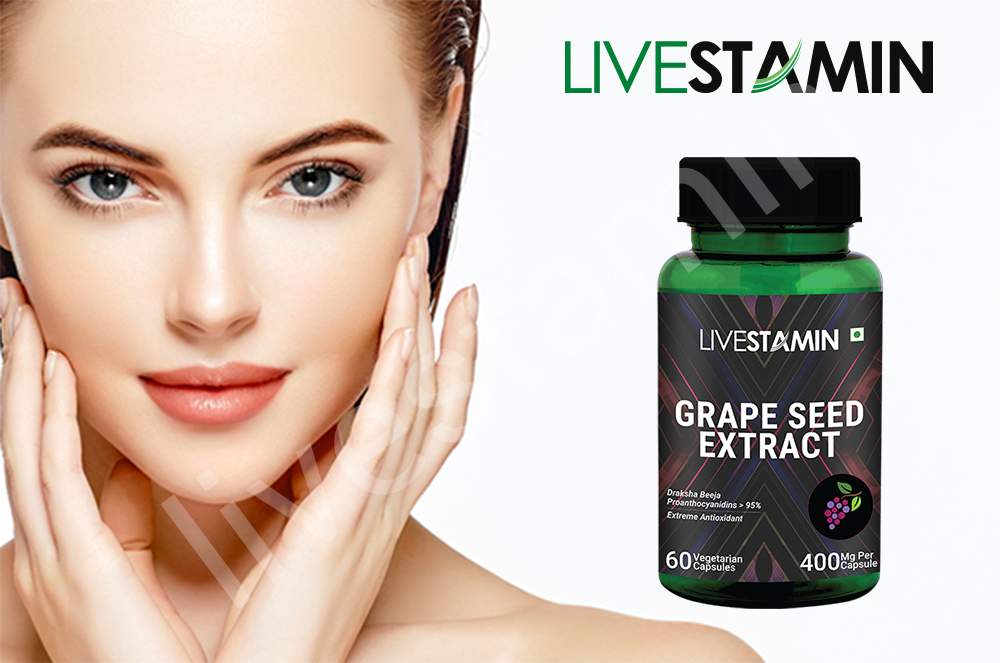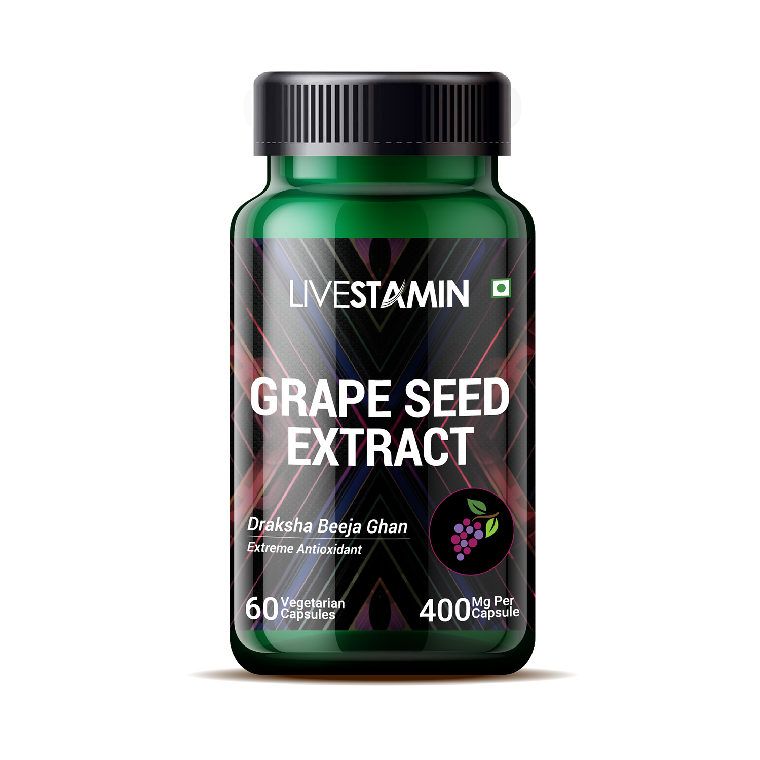 LIVESTAMIN Grape Seed Extract vegetarian capsule contains 400 mg 60 veg capsules per pack of high-quality pure extract standardized to Proanthocyanidins > 95%.