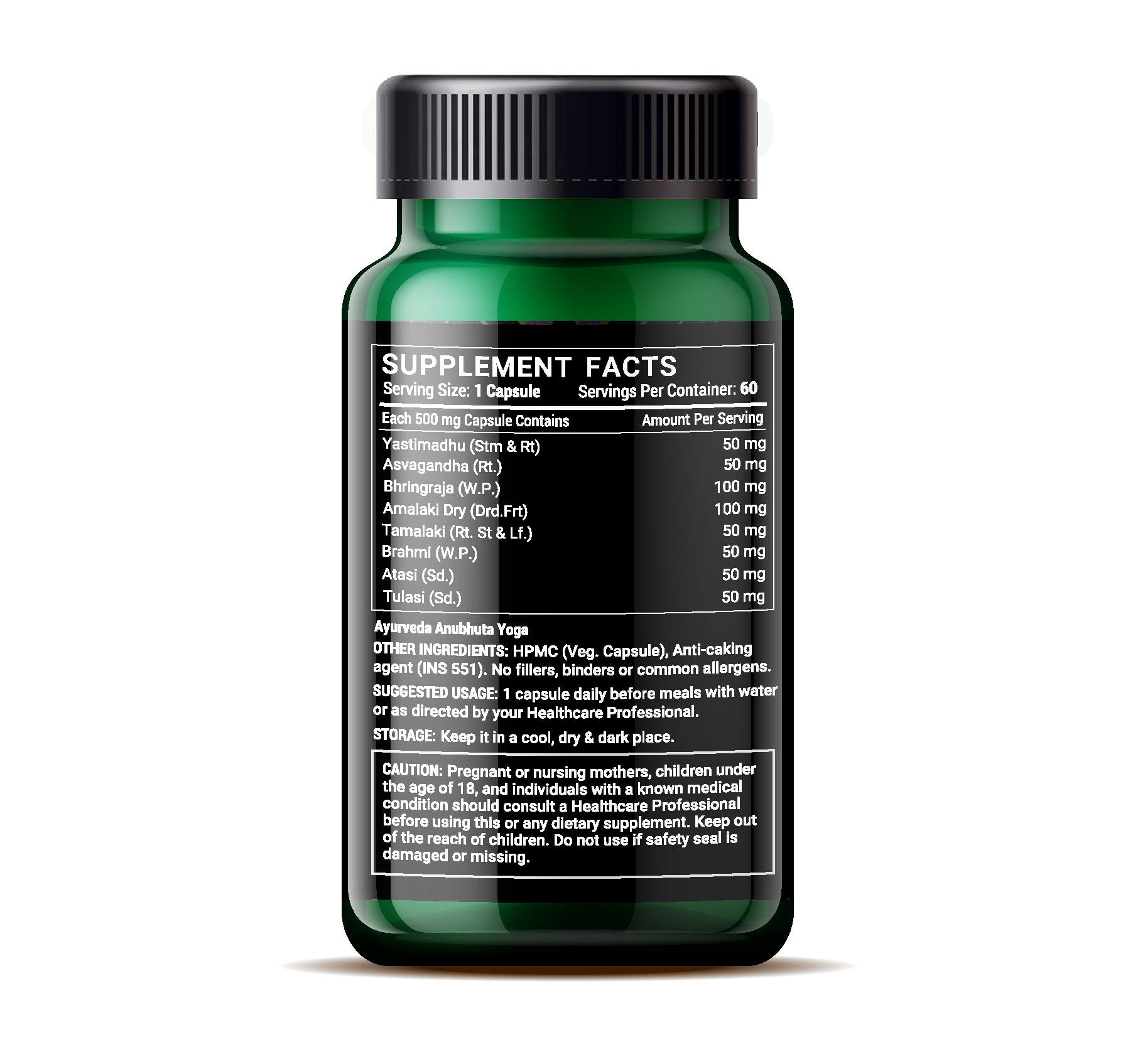 It contains wonder herbs such as Bhringaraja, Amalaki, Brahmi, Ashwagandha, Jatamansi and Shankhpushpi.