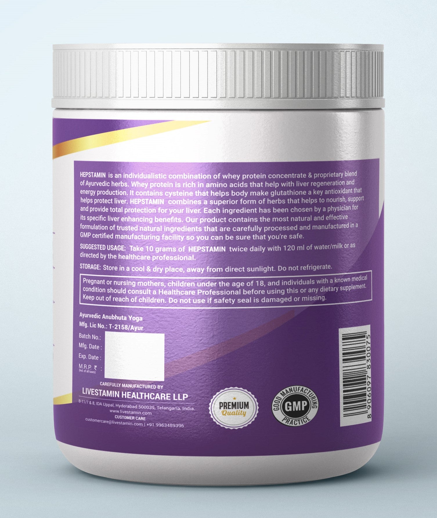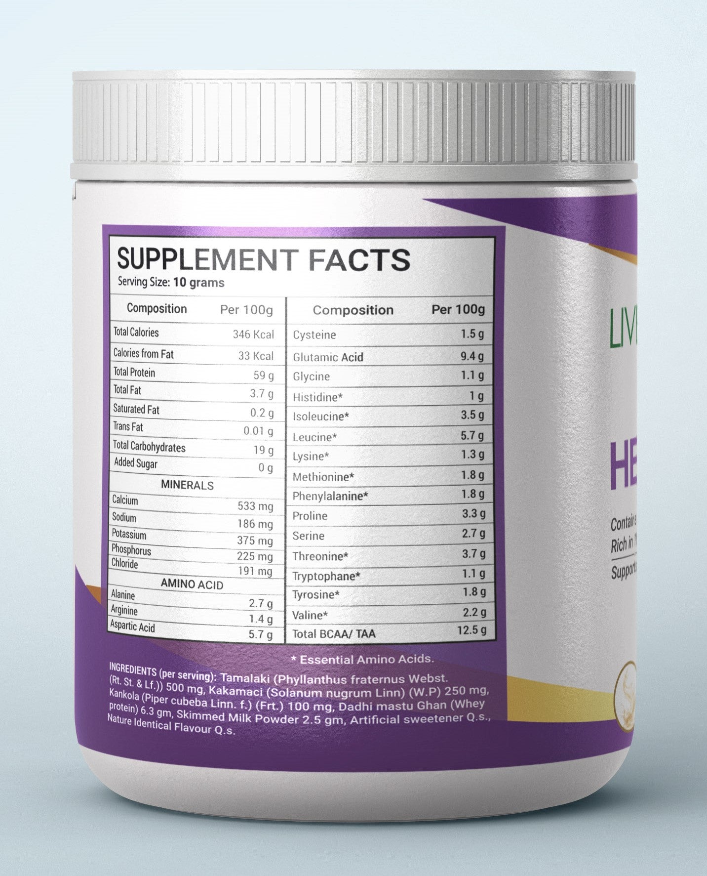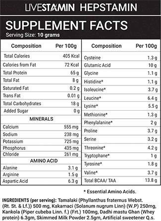 LIVESTAMIN Hepstamin powder enriched with Whey Protein and Skimmed Milk Protein is manufactured to high quality standards. It is an excellent combination of Whey Protein and Skimmed Milk Protein with Tamalaki, Kakamachi, & Kankola that helps to maintain healthy liver. This is perfect for those people who need high amount of protein intake and are nutrient deficient. This supplement helps in Liver support.