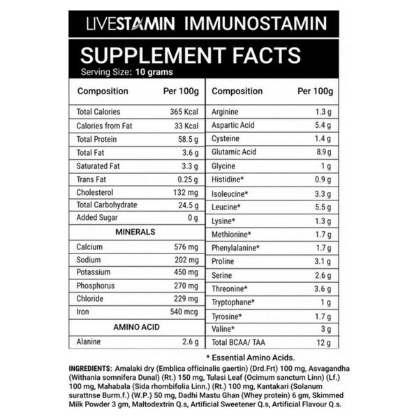LIVESTAMIN Immunostamin Powder is created to maintain all original immune enhancing properties. They are several components in the product that will work together to improve and strengthen your immunity.