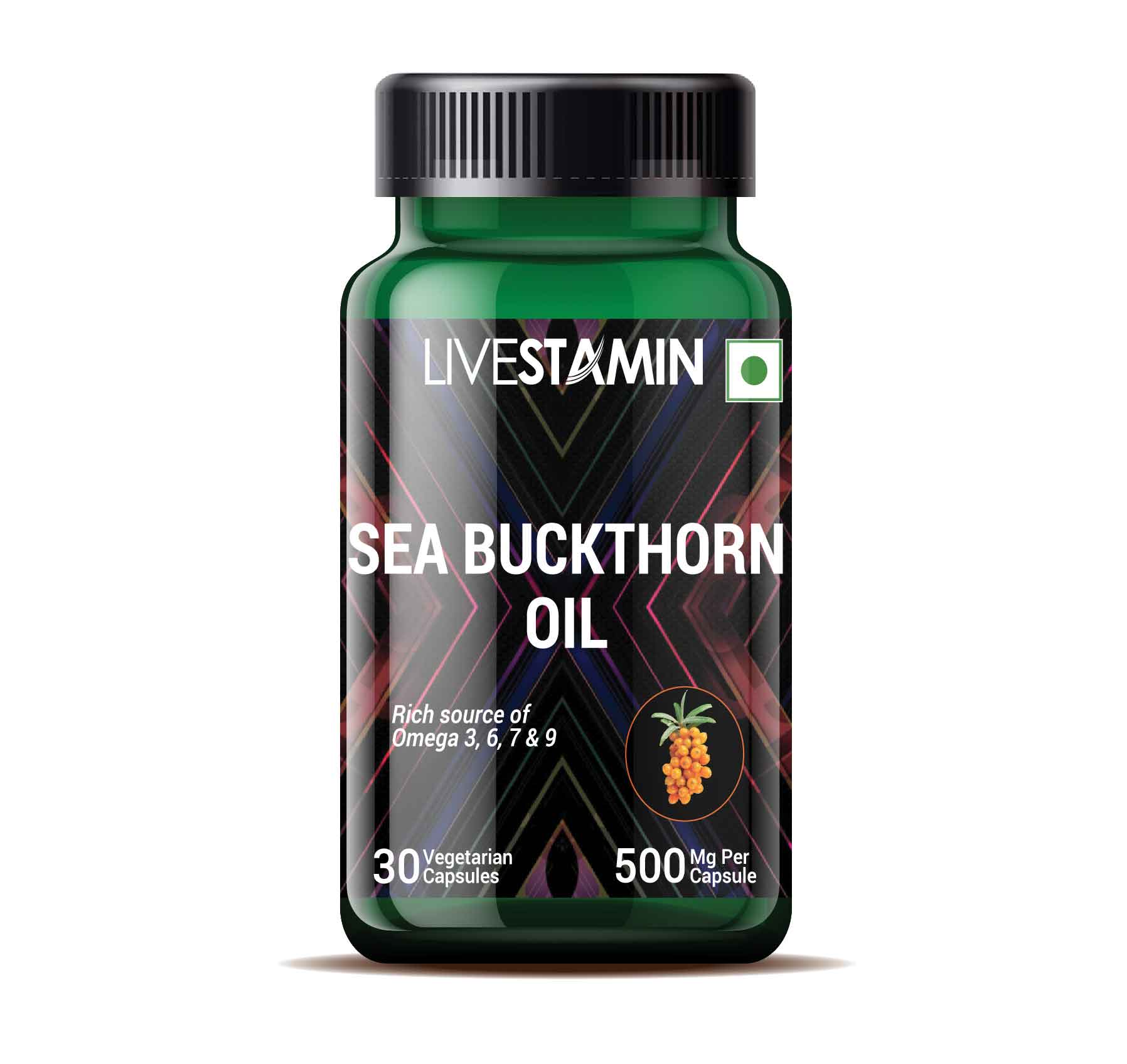 LIVESTAMIN Sea Buckthorn oil Capsules contain 500mg sea buckthorn seed oil per capsule. 30 capsules per pack. Sea buckthorn provides the highest concentration of omega 7 fatty acids when compared to alternative sources like Anchovies and Macadamia nuts.